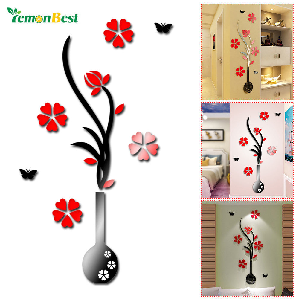 Artistic DIY 3D Vase Flower Pattern Acrylic Wall Sticker L/M size for Home Living Room Bedroom Office Holiday Decoration