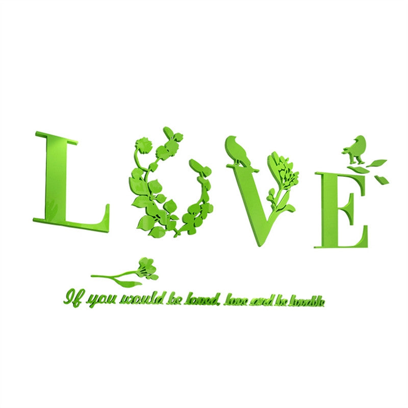 Are you looking for a decoration that is romantic and beautiful for your bedroom? This item is an excellent choice for you. It is LOVE wall sticker designed with leaf and proverb, very stylish and modern for mural decoration. The 3D effect makes it more vibrant and romantic.